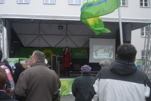 Dem Aufruf eines breiten Bündnisses von Günzburger Organisationen und Parteien folgten ca. 400 Menschen. Die Gegenveranstaltung endete mit einer Menschenkette die vom Korczak-Denkmal die bis zum, leider mit einem Auto verdeckten Mengele Mahnmal, reichte. Um 13.30 fand dann die von den Grünen organisierte Gegenkundgebung auf dem Schloßplatz statt an der anfangs gezählte 200 Menschen teilnahmen.