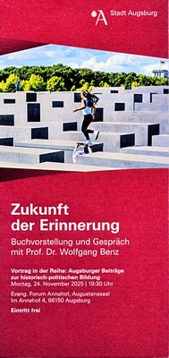 Veranstaltungsreihe: "Augsburger Beiträge zur historisch-politischen Bildung" Mo. 24.11.2025: Augustanasaal, Im Annahof 4, Augsburg Die Zukunft der Erinnerung - Das deutsche Erbe und die kommende Generation