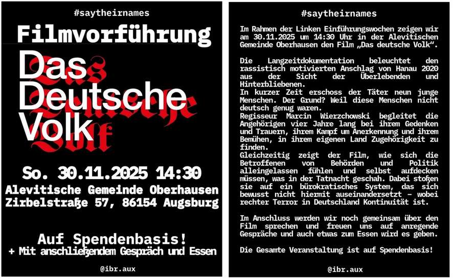 Veranstalter: IBRA (Initiative zur Bekämpfung von Rassismus Augsburg), VVN-BdA KV Augsburg Kooperationspartner